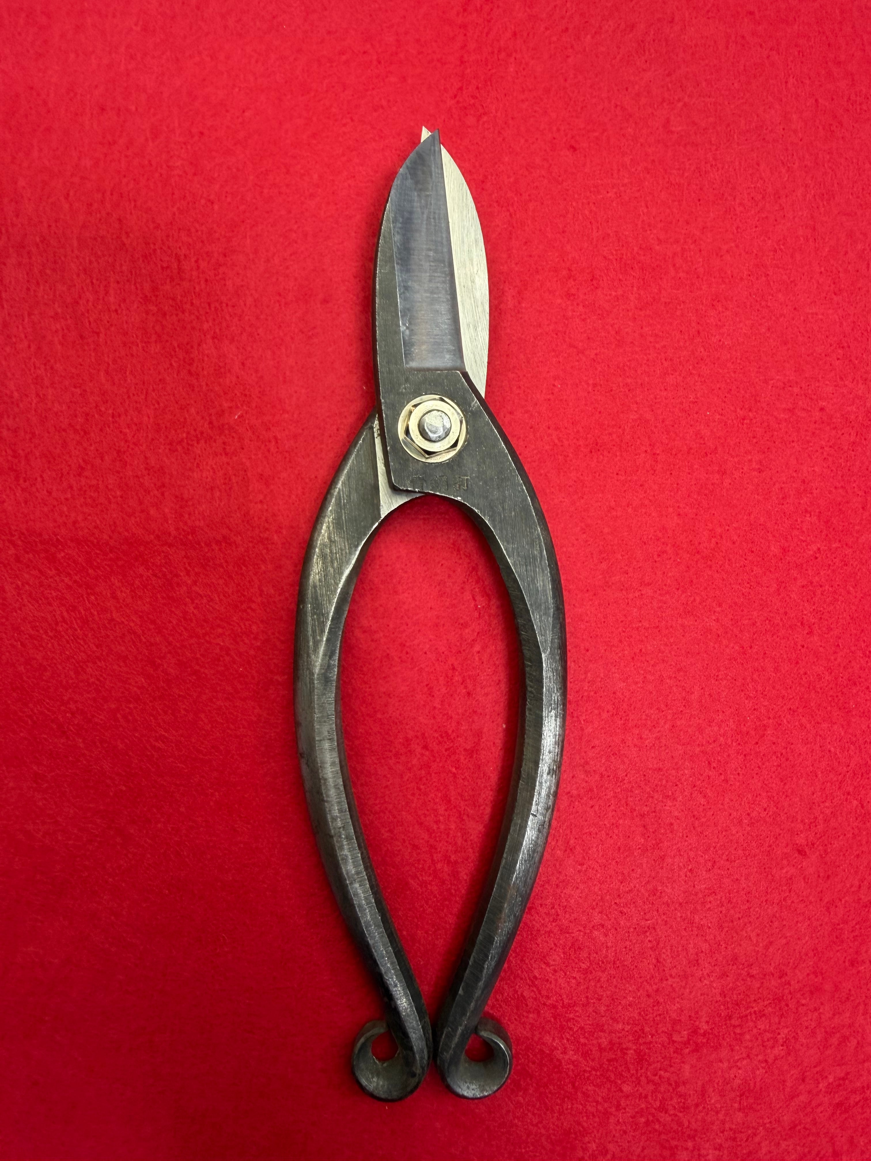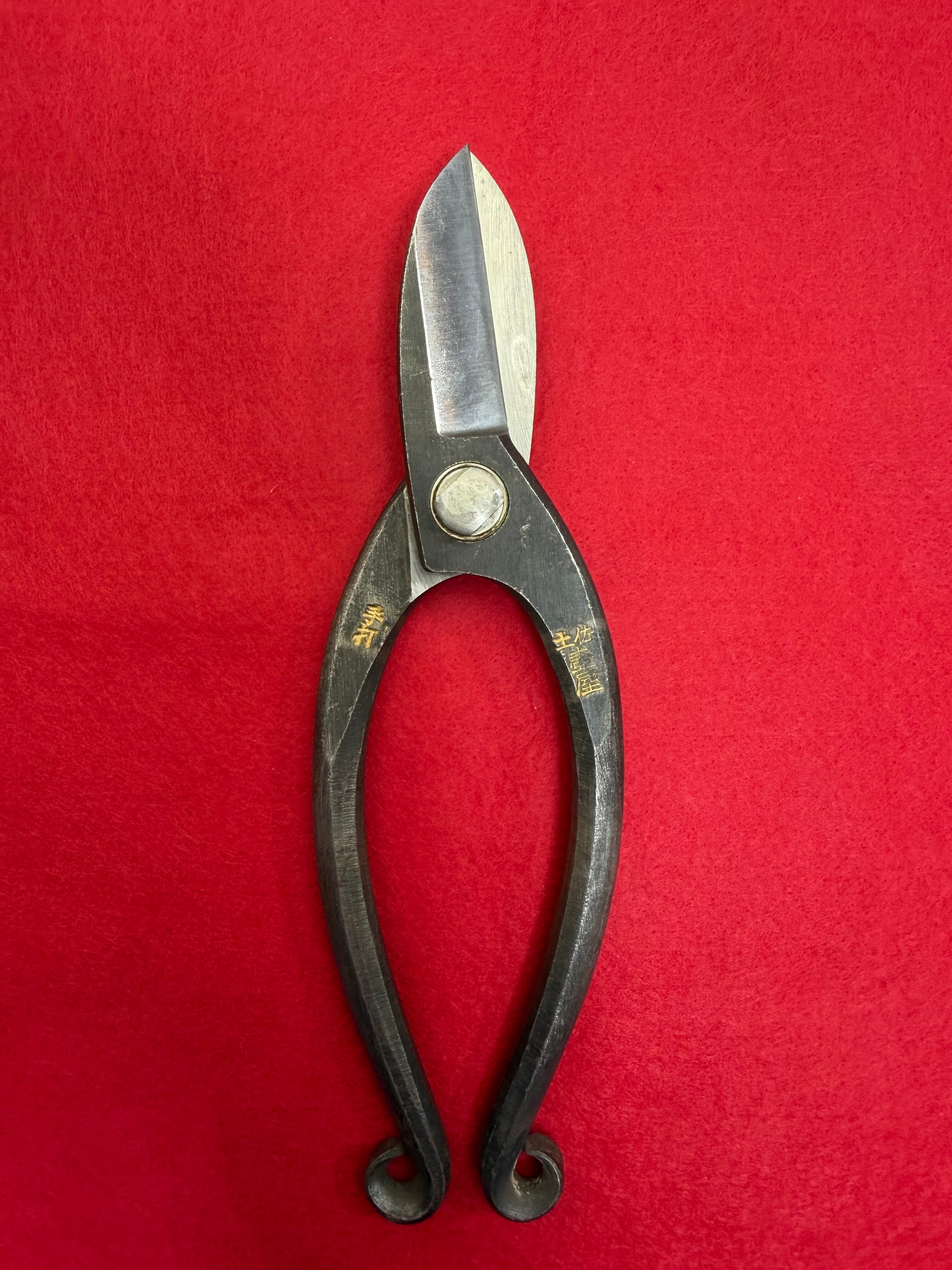 生花用の花鋏です。 水気があると錆びますが、切れ味の良い青紙1号を鍛造し作っています。 全長 180㎜ 刃長 50㎜ 重量 198g